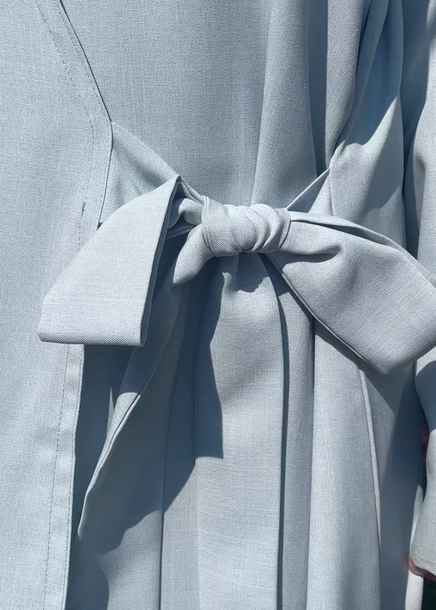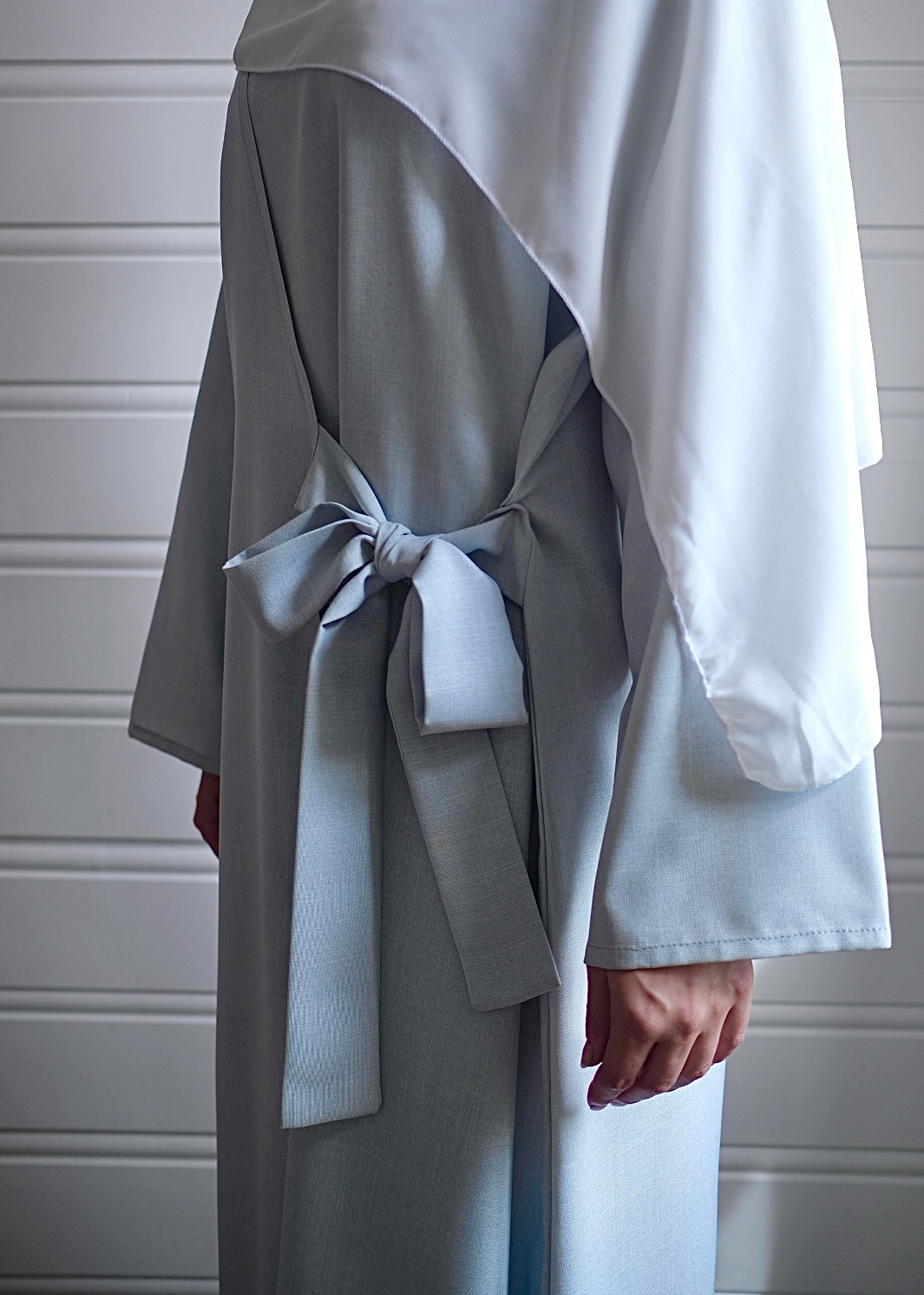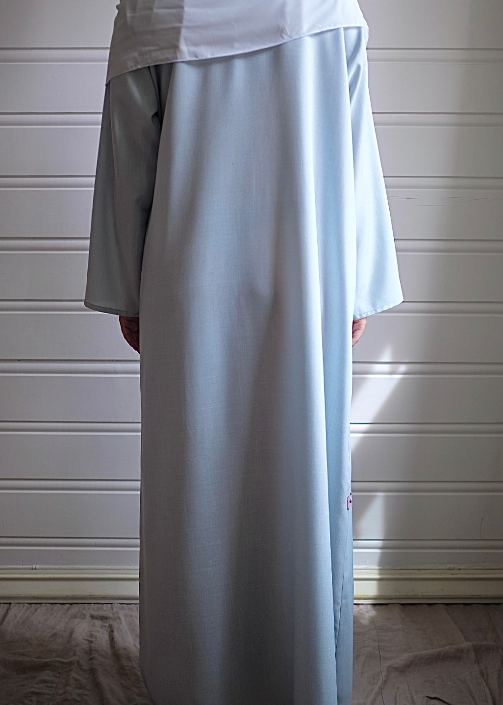 Nydelig abaya, og utrolig deilig stoff 🩵 elsker at man kan stramme eller løsne etter ønske. Str 58 passet perfekt til meg som er 170cm🌸